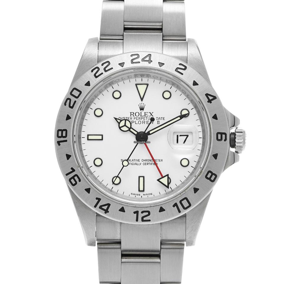 [Control number] 650798 Genre Watch/Men’s Brand rolex Model] Explorer ii Model No. ] 16570 Serial No. ] m (manufactured around 2008) Movement] Automatic / Cal. 3186 Dial] White Case] Stainless steel Sapphire crystal windshield Bezel] Stainless steel Bracelet] Oyster bracelet (stainless steel) Condition Pre-owned Rank a Case: Slightly scratched and slightly struck. Bezel: Few minor scratches. Belt: Slightly scratched. Buckle: No noticeable damage Windshield: No noticeable damage Size Case  Height/approx. 40mm  Width/approx. 40mm  Thickness: approx. 12mm Lug width/20mm Arm circumference: approx. 19. 5 cm [Functions Waterproof (100m) Luminova luminescence Date display 2-time display Accessories Manufacturer’s warranty (purchased overseas in October 2008) Manufacturer’s box (damaged) Booklet Model Description. Developed for people who work in places where it is impossible to keep track of time according to the position of the sun, such as in caves or in polar regions, the Explorer ii is structured around a 24-hour display of the time. Equipped with Cal. 3185, a movement capable of independent correction of the short hand, it is also possible to display dual time using the 24-hour hand and the short hand. In 2007, the movement was replaced by the Cal. 3186 with improved single correction of the short hand and a Parachrom balance spring, which was produced until 2011. Comment. Overhauled in February 2025 at our own workshop