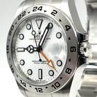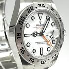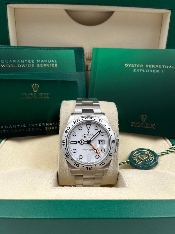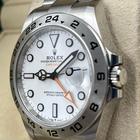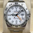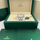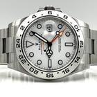 This watch is 100% Unworn and comes with the Original Box Booklets Green Chronometer Tag and Warranty Card. The watch does not come with the bezel protector nor the white serial tag. The warranty card was dated and all of the stickers were removed from the watch at the time of the original purchase from the Rolex Authorized Dealer. The bracelet may have been sized at the time of the original purchase but the watch comes with all links that come standard on Rolex Explorer models.