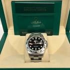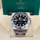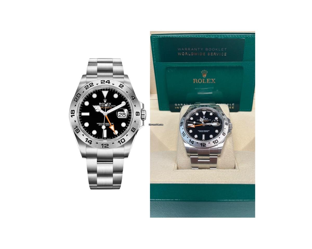 42mm Oystersteel case, screw-down back, screw-down crown with twinlock double waterproofness system, fixed bezel with 24-hour graduations, scratch-resistant sapphire crystal with cyclops lens over the date, black dial, hour markers set with blue Chromalight, Rolex calibre 3285 self-winding movement with second time-zone hour hand and instantaneous date, approximately 70 hours of power reserve, Oyster bracelet with flat three-piece links, folding Oysterlock buckle with Easylink 5mm comfort extension link. Waterproof to 100 meters.