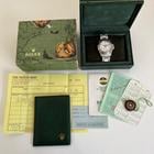 Lovely complete example of a Rolex Explorer 16550 dating to 1984 (843… serial number). Amazingly this watch comes complete with its original inner and outer box green plastic wallet Chronometer Seal Translation Booklet Rolex Oyster and Explorer booklets Rolex Chronometer Guarantee Certificate complete with Caseback Sticker Calendar Card sales Invoice and UK Rolex Service Guarantee Card dated 01/01/1997.