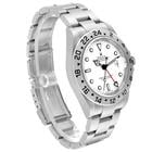 Rolex Explorer II Polar White Dial Steel Mens Watch 16570. Officially certified chronometer automatic self-winding movement. Stainless steel case 40. 0 mm in diameter. Rolex logo on the crown. Fixed stainless steel bezel with engraved 24 hour markings. Scratch resistant sapphire crystal with cyclops magnifier. Polar white dial with luminescent inlay hour markers and Mercedes hands. Red 24-hour hand. Date window at 3 o’clock aperture. Stainless steel oyster bracelet with flip lock clasp. Fits a 7. 5 wrist. Excellent condition.