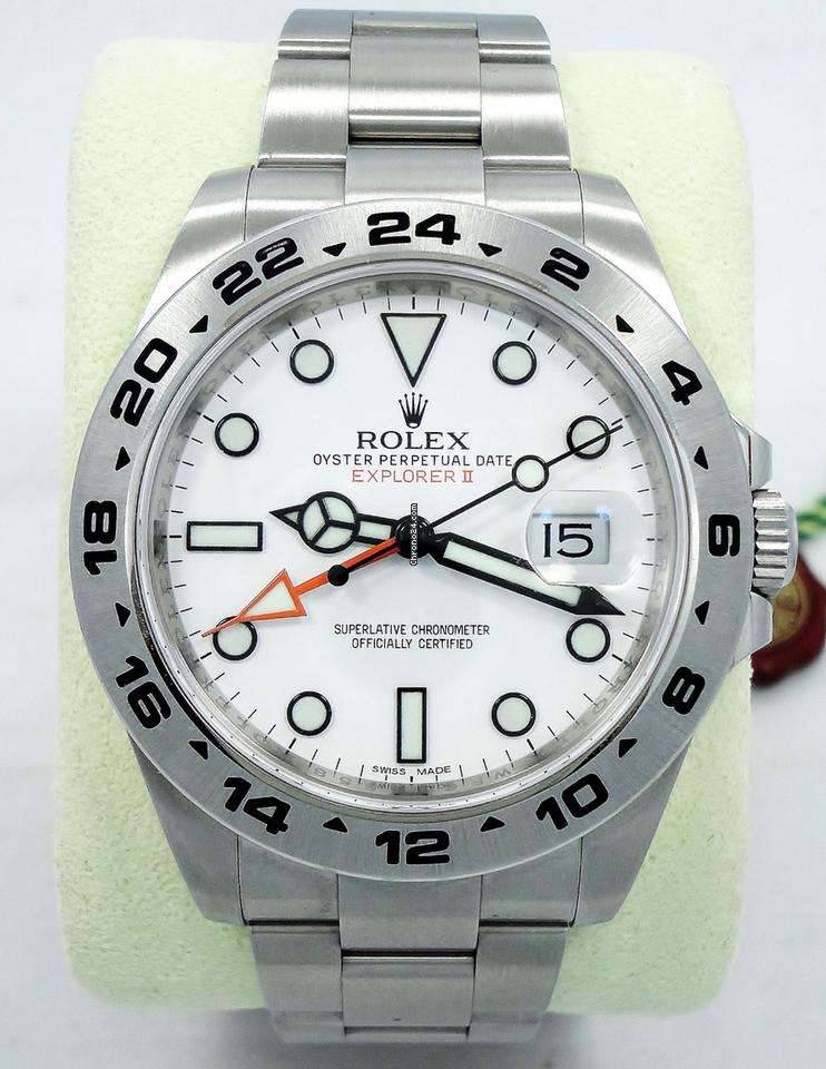 ROLEX EXPLORER II REF# 216570 You are Looking at ROLEX EXPLORER II STAINLESS STEEL WHITE DIAL 42mm MEN’S WATCH 100% guaranteed authentic! The watch is in Excellent Working Condition and Pristine Condition as you can see from the detailed pictures!! Rolex officially certified chronometer self-winding movement Stainless Steel Case Case Diameter: 42mm Stainless Steel Bezel Rolex White dial with luminous inlay hands and hour markers Date calendar at 3 o’clock aperture Orange second hand- independently adjustable 12-hour hand allows for simultaneous operation of a second time zone (GMT function) stainless steel oyster band with flip-lock clasp, fits up to a 7. 25’’ Wrist Rolex logo on a crown Scratch Resistant Sapphire Crystal No box/papers, will be shipped in a beautiful watch box and a certified appraisal with the matching serial number. This Luxurious ROLEX EXPLORER II would be an asset to every watch collection!! Don’t miss out on this opportunity especially at this price!