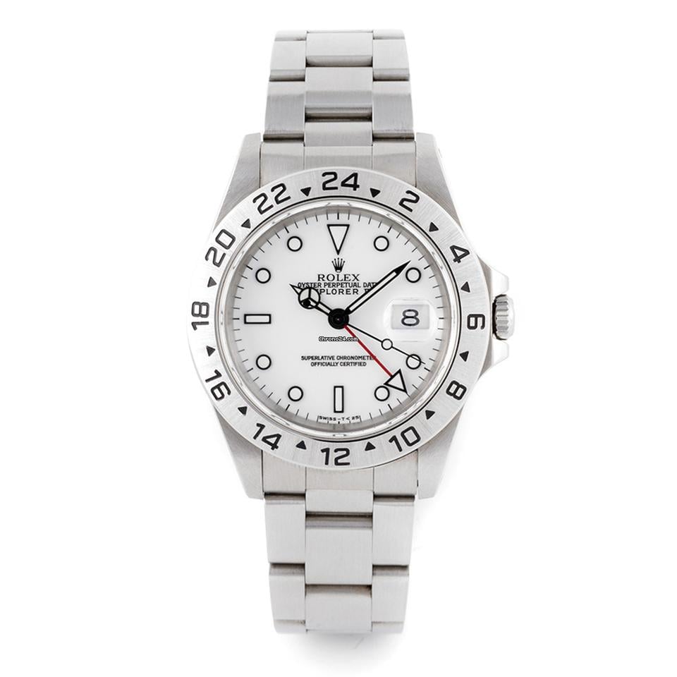 Rolex Explorer II 16570 – White Dial Stainless Steel Oyster Bracelet Automatic For sale is the iconic Rolex Explorer II 16570 a rugged and versatile timepiece designed for adventurers and everyday wear. This model features a 40mm stainless steel case known for its durability and classic proportions paired with a fixed stainless steel bezel engraved with a 24-hour scale for tracking a second time zone.
