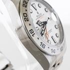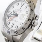 The Rolex Explorer II reference 216570 with a white Polar dial is a bold and functional timepiece designed for adventurers and everyday wearers alike. Featuring a crisp white dial with luminous hour markers and the signature orange 24-hour hand, this model pays tribute to the brand’s exploration heritage while offering modern reliability. Housed in a robust 42mm stainless steel Oyster case and powered by the in-house Caliber 3187 movement, it includes a fixed bezel with 24-hour graduations, allowing wearers to track a second time zone—an essential feature for cave explorers and globetrotters alike. The white dial, affectionately nicknamed the Polar, offers a stunning contrast against the black outlined markers and bold hands, enhancing legibility in low-light environments. With its rugged construction, screw-down crown, and 100-meter water resistance, the 216570 is built to handle extreme conditions. This particular example, available at Filigree Jewelers, is an excellent representation of Rolex’s commitment to precision, durability, and timeless design, making it a favorite among collectors and enthusiasts.