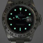 Mint preowned mens Rolex Explorer II (ref. 16570 ; A-serial number approx 1999- ) in stainless steel features a black dial with date and red GMT hand. Comes on Rolex Oyster bracelet with deployant buckle. Fits up to 7. 5 inch wrist. Box and Papers Not Included. We are a family owned brick and mortar Jewelry Store specializing in fine new and pre-owned jewelry and watches. Each of our pre-owned watches is fully checked, serviced, and detailed. All items guaranteed authentic.