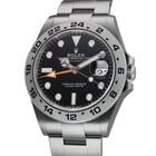 This Explorer II 226570 is new un-worn with original box and papers. MSRP: $9750 USD Case is made of stainless steel with brush-finished lugs and high-polish finished sides. The 24-hour bezel mounted atop is brush-finished stainless steel. Both crown and solid case back are screw-down. The oyster bracelet is stainless steel as well mostly brush-finished with the exception of the sides of the links.
