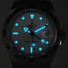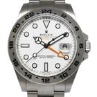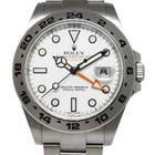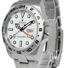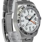 Pristine preowned mens Rolex Explorer II (ref. 216570; Scrambled -series – 2012+) in stainless steel features white dial with round hour markers and orange GMT hand. Comes on Rolex stainless steel Oyster bracelet with deployant buckle. Fits up to 7-1/4 inch wrist. Does not come with box or papers. We are a family owned brick and mortar Jewelry Store specializing in fine new and pre-owned jewelry and watches. Each of our pre-owned watches is fully checked, serviced, and detailed. All items guaranteed authentic.