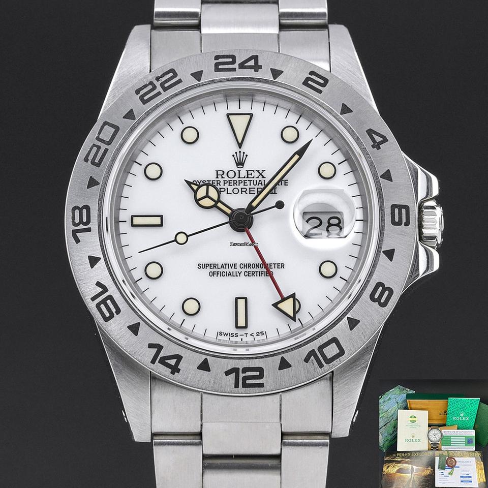 This Rolex Explorer II 16550 features a White dial and is crafted from stainless steel with a production year of 1987.