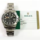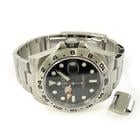 Stainless steel case with a stainless steel Rolex oyster bracelet. Fixed stainless steel bezel showing 24 hour markers. Black dial with luminous silver-tone Mercedes-logo sword and Breguet-style shape hands and dot hour markers. Minute markers around the outer rim. Dial Type: Analog. Luminescent hands and markers. Date display at the 3 o’clock position. Rolex calibre 3187 automatic movement with a 50-hour power reserve. Scratch resistant sapphire crystal. Screw down crown. Solid case back. Round case shape. Case size: 42 mm. Band width: 20 mm. Oysterlock clasp. Water resistant at 100 meters / 330 feet. Functions: GMT second time zone date…