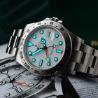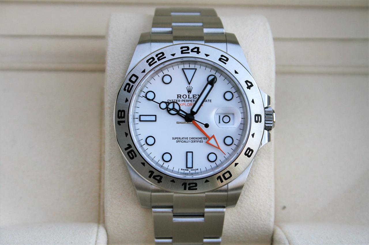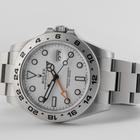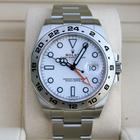 Rolex Explorer II Polar 42mm Dual Timezone in Superalloy 904L Stainless Steel White Dial 24-Hour Bezel and Hand Independent Orange 12-Hour Hand Second time zone with independent rapid-setting of the hour hand Instantaneous date and Stop-seconds for precise time setting Screw-Down Crown with Twinlock Double Waterproofness System Self-Winding Rolex Calibre 3187 Automatic Movement Stainless Steel Oysterlock Bracelet with Easylink 5mm comfort extension link.