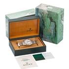Modello con cassa in acciaio. Bracciale Oyster in acciaio con chiusura déployante. Lunetta in acciaio graduata 24 ore. Quadrante bianco. Datario a ore 3 e lente Cyclope. Piccoli secondi al centro. Vetro zaffiro. Movimento meccanico a carica automatica. Orologio corredato di scatola in pelle garanzia cartacea traforata datata giugno 1996 e Service Rolex datato dicembre 2024.