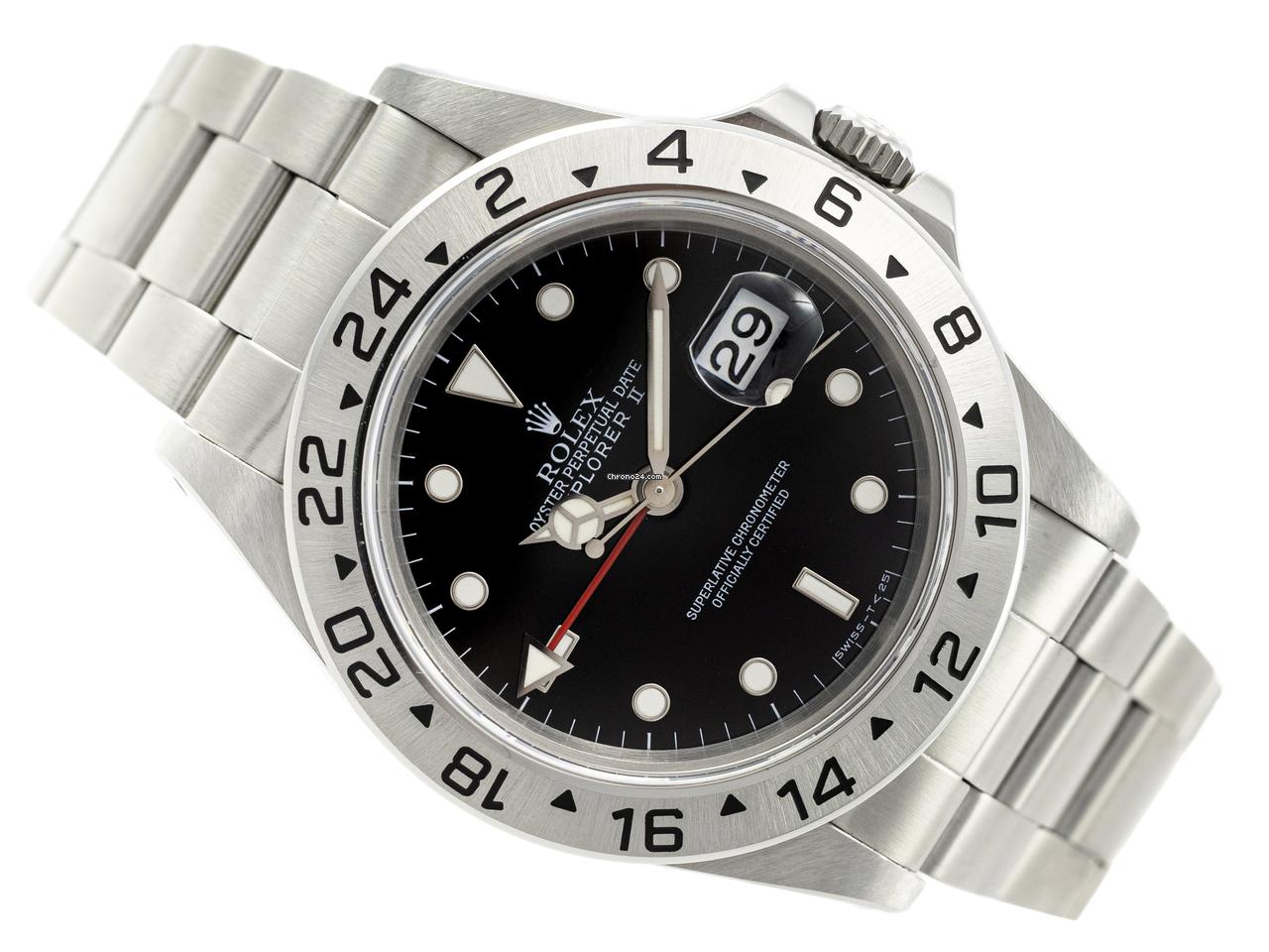 The set contains an original box, original papers (FULL SET) and our company invoice. ___ Rolex Explorer II Oyster Perpetual Date Steel Automatic 40mm – FULL SET Reference: 16570 Movement: Automatic Case Size: 40mm Description: The Rolex Explorer II, reference 16570, is a robust and functional tool watch designed for adventure and precision. Featuring a 40mm stainless steel case, this model includes a fixed 24-hour bezel and a dedicated GMT hand, allowing the wearer to track a second time zone—ideal for explorers and travelers. Powered by a reliable automatic movement, the Explorer II offers Rolex’s signature durability and accuracy. The clean dial layout, date display with Cyclops lens, and luminous hour markers ensure legibility in all conditions. Key Features: Case: Stainless Steel Size: 40mm Movement: Automatic Complications: Date, GMT (Second Time Zone) Bezel: Fixed 24-hour scale Dial: Highly legible with luminous markers Crystal: Sapphire with Cyclops lens Bracelet: Oyster bracelet in stainless steel Set: Full Set including box and papers This Rolex Explorer II 16570 is a versatile and iconic model built for adventure. Contact us for more details or to secure this complete and highly sought-after timepiece. ___ Our customer service department will gladly answer all your questions regarding the condition and availability of the watches from our offer. We can also buy your watch, or sell it for you, or even auction it – Ask for terms, costs and details. We are professional dealer form Warsaw (Poland) and speak Polish, German and English. Due to safety measures watches are not stored in our office.