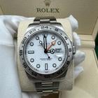 The Rolex Explorer II 216570 with the iconic Polar dial is a timepiece designed for adventurers and explorers. Its crisp white dial, punctuated by the distinctive orange 24-hour hand, ensures optimal legibility even in the harshest environments. Crafted with precision and durability in mind, this watch is engineered to withstand extreme conditions and is equipped with Rolex’s legendary self-winding movement, making it a reliable companion for those who seek new horizons. Beyond its robustness, the Explorer II 216570 exudes a timeless sporty elegance that seamlessly transitions from rugged terrains to urban settings. Its 42mm stainless steel case and Oyster bracelet are not only built to last but also add a touch of sophistication to any wrist. With its dual time zone feature and 24-hour bezel, it’s the ultimate tool for globetrotters and explorers who appreciate both form and function. Whether you’re spelunking in the depths of a cave or navigating a bustling cityscape, the Rolex Explorer II 216570 Polar dial is a watch that embraces adventure with style and precision. It’s a testament to Rolex’s commitment to excellence and an embodiment of the spirit of exploration that has defined the brand for decades.