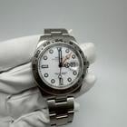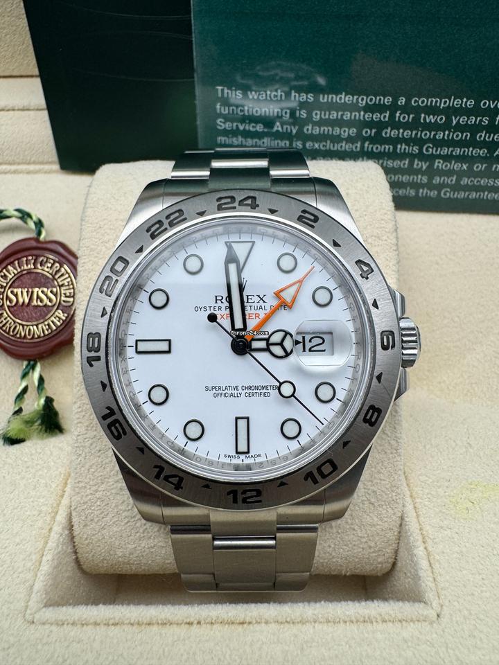 The Rolex Explorer II 216570 with the iconic Polar dial is a timepiece designed for adventurers and explorers. Its crisp white dial punctuated by the distinctive orange 24-hour hand ensures optimal legibility even in the harshest environments. Crafted with precision and durability in mind this watch is engineered to withstand extreme conditions and is equipped with Rolex’s legendary self-winding movement making it a reliable companion for those who seek new horizons.