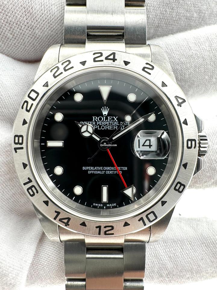 This is a pre-owned Rolex Explorer 40mm black dial in overall good condition. The watch comes with its original papers. The year of production for this watch is 2006. There are signs of wear on the bezel, bracelet, case, caseback, and clasp. There are particularly noticeable scratches on the side of the lugs on either side of the crown. The crystal is free of damage. There are twelve (12) links on the bracelet. The watch fits an approximate 7. 25 wrist size. If additional links are needed, they can be included with the shipment of this watch for an additional cost. The service history of the watch is unknown. However, the watch does not need a service. The purchase comes with our one year, in house, limited warranty on the movement of the watch. The warranty does not cover abuse, cosmetic damage, or water damage.