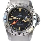 Brand: ROLEX Model: Explorer II 1655 Freccione MK2 Steve McQueen for Cartier 1974’s Reference: 1655 Number serial case: 374XXXX Number serial Movement: D56XXXX Year of production: 1974 Case / Dimensions: Steel / 40 MM excluding winding crown Case thickness: 13 MM including plastic glass Case back: Oyster 1655 steel waterproof screw closure Water resistance: 50MT / 5 ATM Bezel: MK2 satin steel with GMT function original Rolex of the epoch Glass: Plastic domed Tropic 116 with Cyclops lens Dial: MK2 by Cartier matt black colour with date indexes and hands to tritium Movement: Automatic winding mechanical caliber 1570 – 26 Jewels Bracelet: Oyster U. S. A. 74 steel elastic to refolded meshes with deployante closure Rolex Box: Original Rolex U. S. A. of the epoch Warranty Rolex: No Technical expertise of authenticity “myWatch expertise by KeepTime Lab” Shop warranty: Valid for 12 Months Notes and conditions: Rolex Explorer II 1655 Freccione MK2 for Cartier steel, year of production 1974, MK2 satin steel bezel with GMT function, domed plastic glass with cyclops lens, MK2 matt black colour dial with date personalized with Cartier written, tritium indexes and hands, automatic mechanical movement, Oyster steel U. S. A. bracelet to refolded meshes with closure Rolex deployante. Rare example of Rolex Explorer II 1655 Freccione, personalized by the Cartier boutique on Fifth Avenue in New York City in the years 1970’s with the Cartier writing on the dial, punched on the inner lug of the case at 07:00 with the progressive Cartier number registration serial. Watch original Rolex/Cartier in all its parts, coming from the private collection of an important American collector, overhauled in excellent condition, no or barely visible signs of wear, original Rolex U. S. A. box of the epoch, technical expertise of authenticity “myWatch expertise by KeepTime Lab”, warranty/declaration of sale our shop valid for 12 months.