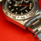 1986 Rolex Explorer 16550 Black Spider Rail Dial The case is excellent showing sharp prominent bevels and only very light wear. The bolder font stainless bezel is also excellent showing little if any wear.