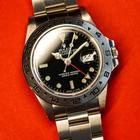 1986 Rolex Explorer 16550 Black Spider Rail Dial The case is excellent showing sharp prominent bevels and only very light wear. The bolder font stainless bezel is also excellent showing little if any wear. The black rail dial is showing a spidering patina from the 12 o clock to the 5 o clock area. The lume has aged to a clean creamy hue and the hands are matching. 12 link Oyster bracelet showing minimal stretch. Stamped with a matching date code.