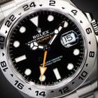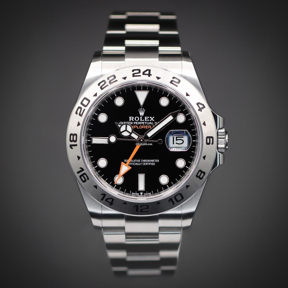 ROLEX Explorer II 42mm Black Dial, Ref. 226570, Complete Set This timepiece is in excellent condition with only negligible signs of wear. This fully linked set comes complete with inner and outer boxes, green tag, booklets, and warranty papers dated February 12th, 2023. The Explorer II (226570) features a 42mm stainless steel case and a matching GMT-engraved bezel, allowing for the tracking of multiple time zones. The black dial includes luminous hour markers and hands, along with a prominent orange GMT hand. A date window at the 3 o’clock position, magnified by the Cyclops lens, enhances the watch’s practicality. Paired with the Oyster bracelet, this timepiece blends durability and sophistication, perfect for any adventure. Delivery: I deliver fully insured using FedEx overnight priority in the continental USA to your nearest FedEx ship center. I have built my business on the principals of honesty, transparency and quality. I shoot photos and video using a professional grade macro lens to highlight any blemishes, so please look closely. I firmly stand behind each one of my timepieces and guarantee its authenticity. NOTE: Seller is in no way affiliated to, sponsored by, or an authorized dealer of this or any other brand. Listing Details: * Reference Number: 226570 * Case Material: Steel * Bezel Material: Steel * Case Diameter: 42mm * Crystal: Sapphire Crystal * Dial: Black * Dial Numbers: No Numerals * Bracelet Material: Steel * Movement: Auto 3285 * Power Reserve: 70h * Number of Jewels: 31 * Water Resistance: 100m