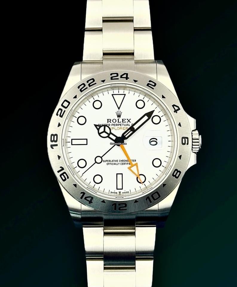 Rolex Explorer II – Polar Dial 226570 – 2023 Why We Like It: The Explorer II is arguably the most “tool watch’“ model in the Rolex line up. Tis updated version has the new matte black PVD coated chromalight hands and markers and is fitted to an all brushed oyster bracelet. The polar dial is as striking and popular as always. What you should know: Excellent condition, fresh and crisp. Powered by Rolex’s self-winding calibre 3285, waterproof to 100m, and a complete Rolex set. Year: 2023 Size: 42mm Set: Rolex box – Instruction booklets – Green Rolex swing tag – Rolex Warranty card and holder. Water Resistance: 100m Movement: 3285