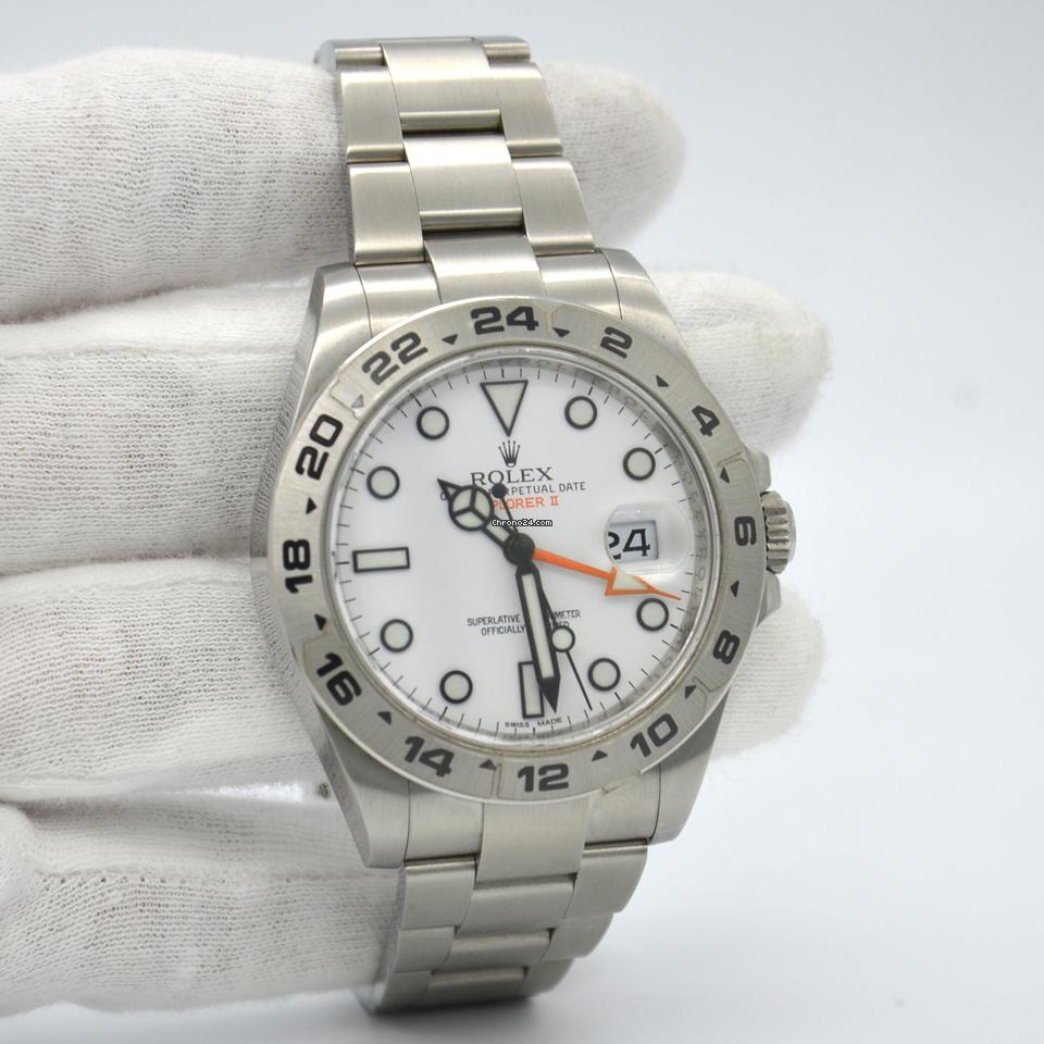 Rolex Style No: 216570 w Rolex Oyster Perpetual Explorer II Watch 42mm stainless steel case 24 hour bezel and hand independent 12 hour hand white dial self-winding Rolex calibre 3187 movement and Oysterlock bracelet with Easylink 5mm comfort extension link.