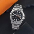 If you are interested or have any questions about the watch, please do not hesitate to contact us. We are available for you around the clock by phone, chat or e-mail. It is also possible to visit our site by appointment. We are – one of the largest watch workshops with over 1,000 square meters – Training company for watchmakers in cooperation with Glashütte/sa – 44 employees, including – 15 conscientious watchmakers and polishers – 4 good-humored photographers – 5 customer advisors who are always happy to help you Description of the watch Rolex Explorer ii automatic stainless steel men’s watch ref. 226570 box & papers 2023 beautiful steel case sporty black dial including box & papers from 2023 high-quality automatic movement caliber 3285 date window at 3 o’clock Purchase date: 04. 02. 2023 condition – Dial: very good condition – Glass: very good condition – Case: very good condition with minimal signs of wear – Bezel: very good condition with minimal signs of wear – Back: very good condition with minimal signs of wear – Strap: very good condition with minimal signs of wear – Movement: fully functional / tested for running behavior, originality and function – Water resistance*: yes. The test report with test pressure information is enclosed. The age of the watch is also taken into account when describing its condition. Scope of delivery – illustrated box – Original papers – dealer invoice Bracelet – Original Rolex steel bracelet – for wrist circumference up to 195 mm – Original Rolex folding clasp Information before purchase: – Fully insured express delivery – 12 months warranty – If the watch is opened during the warranty period, the warranty expires – no warranty is given on the water resistance* – the purchase price is subject to differential taxation in accordance with §25a UStG, VAT is therefore not shown About us: We are pleased to present you with an exclusive selection of first-class luxury watches. For more than 20 years, quality, service and customer satisfaction have been our top priorities, and our experienced team of watch experts is well versed in the finest luxury watch brands such as Rolex, Omega, Breitling, Cartier and many more. We place great importance on authenticity and originality and guarantee the authenticity of all watches in our range. All watches have been checked and processed in our in-house master workshop. You will not only find timeless classics, but also limited editions and exclusive rarities that will make the heart of any watch lover beat faster. Our aim is to offer you a special selection of luxury watches that meet your individual style and requirements. Our customer service team will assist you with expert knowledge and personal advice. We look forward to seeing you. * If the watch has tested positive for water resistance, then this property applies at the time of measurement. According to din 8310, water resistance is not a permanent property. It should be checked annually and before particular stresses occur, as the function of the built-in sealing elements deteriorates with daily use. Influences such as strong temperature fluctuations, chlorine, soap or salt water have a negative effect on the watertightness. Please avoid a common mistake: never operate the crown or chronograph of the watch under water. No matter how high the water resistance rating is. Doc: v. 2501463-880-1403