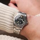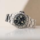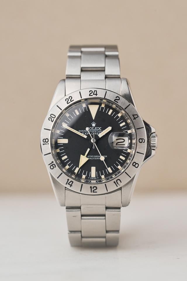 The 1655 Explorer II needs no introduction, considered by many collectors to be the ultimate Explorer model, and for good reason. This model is the very first Explorer II, it was introduced in 1971 and ran for approximately 15 years. Similar to the Paul Newman and the exotic dials, this watch wasn’t particularly popular at the time, most models were elegant and simple, this was called “cluttered and “illegible” by many collectors and writers alike. The 1655 however, was made for a very specific target market. It was aimed at cave explorers who, when working underground for long periods, in darkness, can lose any sense of time, even if it was day or night? The introduction of the 24hr bezel and large luminous 24 hand combated this very niche issue, plus that more rugged case, made it a perfect wrist companion for any adventure. Strangely this watch carries the nickname “Steve McQueen” because he was wearing the 1655 in various commercial adverts although never personally wore one. He was more often seen wearing a 5512 Submariner. Fast forward 50 years and the model has gone from strength to strength among Rolex collectors and vintage enthusiasts, the 1655 is becoming one of the hardest watches to source due to the aforementioned reasons and because they were owned by people who used them for their actual purpose, finding complete and original examples in great condition is even harder. This pieces dates to 1975 and comes with the mk2 ‘Frog Foot’ coronet dial and mk2 bezel, bang on for this serial. The original 78360/580 oyster bracelet stamped A denoting its manufacture in 76 is one link short buy can easily accommodate a 19cm wrist. The watch has six service inscriptions in the case back, dating from the early 80’s to 2017. Its been a well looked after and cherished watch. The movement is still performing well at 5 seconds per day, 240 amps and a beat error of 0. 7. The seahorse box Explorer booklet and Oyster booklet are also with the watch.