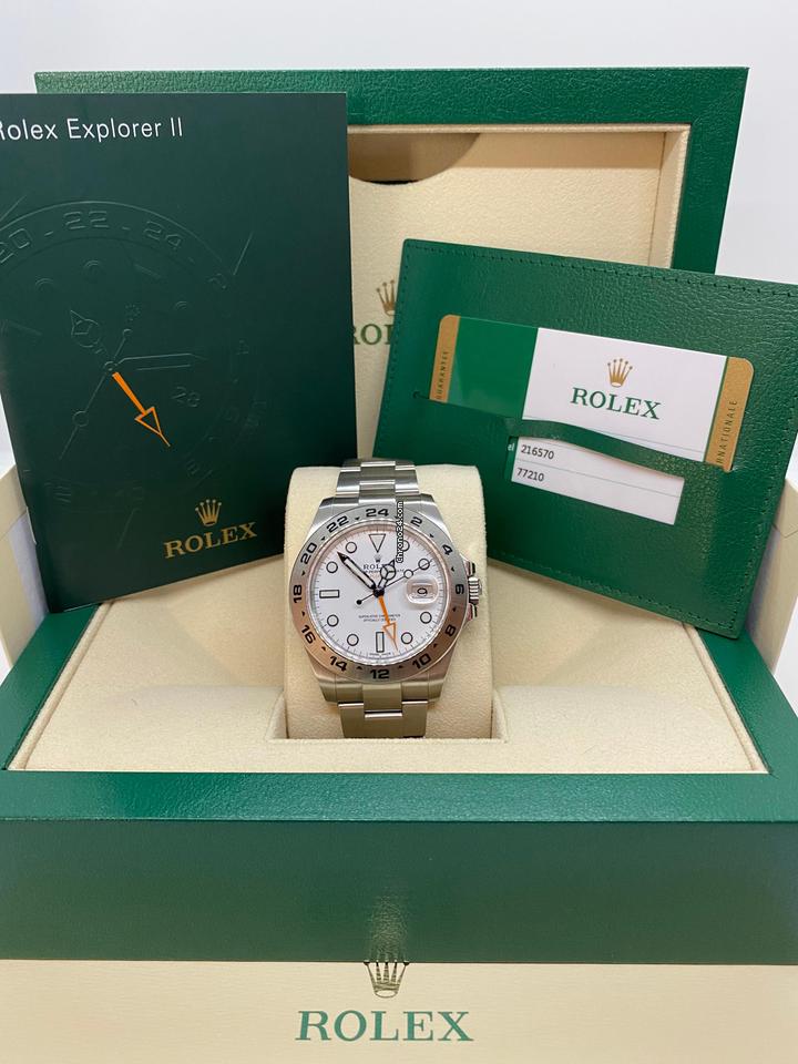 Brand: Rolex Model: Explorer II Reference number: 216570 Movement: Automatic Case material: Steel Dial Color: White Bracelet material: Steel Year of production: 2018 Condition: Mint Scope of delivery: Full set Gender: Men’s watch/Unisex Movement: Automatic Caliber: 3187 Power reserve: 48 h Case diameter: 42 mm If you don’t see the model you’re looking for, please contact us!