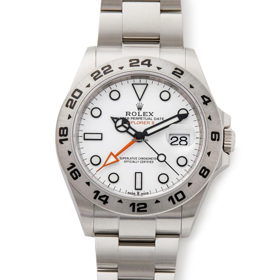 Rolex Explorer II Stainless Steel 226570 This is a pre-owned Rolex Explorer II men’s watch reference 226570 . It has a 42. 00mm case size in stainless steel, with dial on a stainless steel oyster bracelet, powered by an automatic movement. This Rolex is in excellent condition complete with Rolex Box, Manuals & Guarantee. The watch dates to Circa 2023. Our reference is ATS-W008011 should you need to quote this. Manufactured: Circa 2023 Dial: White Baton Glass: Sapphire Crystal Movement: Automatic Case: Stainless Steel Buckle: Deployant Buckle: Stainless Steel Deployant Strap: Stainless Steel Oyster Case Size: 42. 00mm Case: Excellent – Little to no signs of wear Bezel: Excellent – Little to no signs of wear Crown: Excellent – Little to no signs of wear Dial: Excellent – Little to no signs of wear Glass: Excellent – Little to no signs of wear Bracelet: Excellent – Little to no signs of wear Scope of Delivery: Rolex Box, Manuals & Guarantee Availability: Available to order. Delivery Time : 1-2 weeks