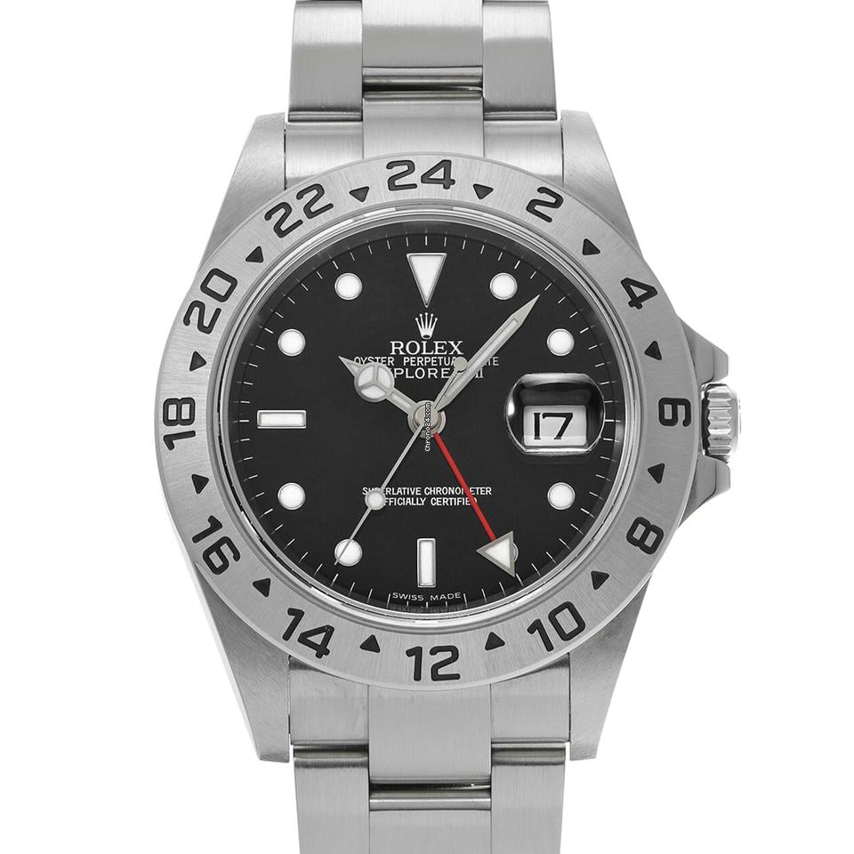 Control number] 663622 Genre Watch/Men’s Brand rolex Model] Explorer ii Model No. ] 16570 Serial No. ] z (manufactured around 2006) Movement] Automatic / Cal. 3185 Dial] Black Case] Stainless steel Sapphire crystal windshield Bezel] Stainless steel Bracelet] Oyster bracelet (stainless steel) Condition Pre-owned Rank a Case: Slightly scratched. Bezel: No noticeable damage Belt: No noticeable damage Buckle: Slightly scratched. Windshield: No noticeable damage Size Case Height/approx. 40mm Width/approx. 40mm Thickness: approx. 12mm Lug width/20mm Arm circumference: approx. 19. 5 cm [Functions Waterproof (100m) Luminova luminescence Date display 2-time display Accessories Manufacturer’s warranty (purchased in Japan in October 2012) Manufacturer’s box, booklet, tags Model Description. Developed for people who work in places where it is impossible to keep track of time according to the position of the sun, such as in caves or in polar regions, the Explorer ii is structured around a 24-hour display of the time. Equipped with Cal. 3185, a movement capable of independent correction of the short hand, it is also possible to display dual time using the 24-hour hand and the short hand. In 2007, the movement was replaced by the Cal. 3186 with an improved independent correction of the short hand and a Parachrom balance spring, which was produced until 2011. [Comment.