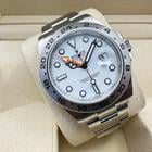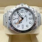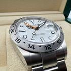 This brand-new unworn Rolex Explorer II Ref. 226570 is a robust and iconic tool watch known for its rugged design and exceptional functionality. Crafted from stainless steel it features the highly sought-after white dial also known as the Polar dial offering maximum legibility and a clean sporty aesthetic.