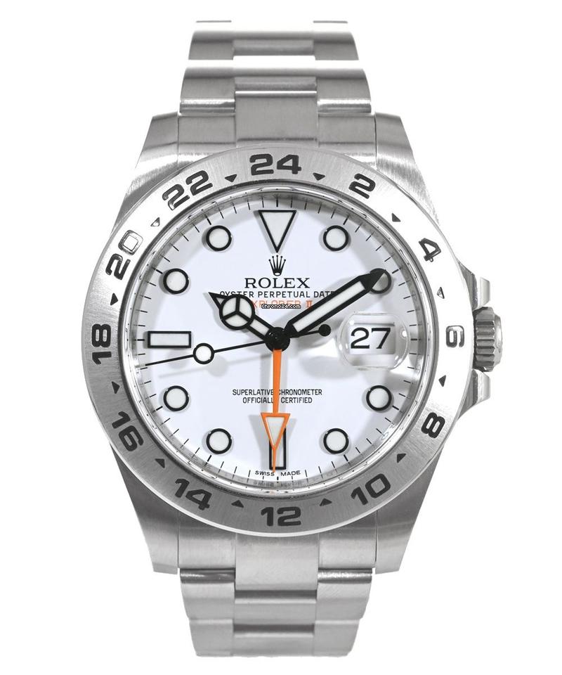 Ref. 216570 men’s watch stainless steel Oyster case diameter approx. 42 mm height approx. 12. 5 mm sapphire crystal screw-down crown and back water-resistant to 10 atm automatic chronometer hours minutes central seconds date display 24-hour hand (gmt) white dial luminous hands and markers Oyster stainless steel bracelet with safety clasp. Original box and papers LC100 12. 2016. The Rolex Explorer ii Ref. 216570is an iconic watch from Rolex’s renowned Explorer collection. This watch was first introduced in the late 1980s and has since become a coveted collector’s item.