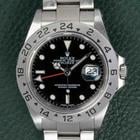 Manufacturer: Rolex Model: Explorer II. ref. 16570 Black dial Year / serial: 2002 – Y Serial; papers are undated Condition: Excellent worn condition with wear commensurate with age Features: Black dial. GMT. Date. Steel bezel Movement: Automatic Rolex cal. 3185 Case / bezel: 40mm (excl. crown) stainless steel case and bezel Dial / hands: Black dial Bracelet: Original full length oyster steel bracelet Box / papers: Full Set; watch, warranty certificate, red Rolex tag, manuals, inner and outer boxes.