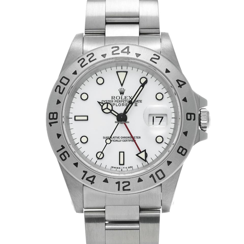 Control number] 646840 Genre Watch/Men’s Brand rolex Model] Explorer ii Model No. ] 16570 Serial No. ] x (manufactured around 1991) Movement] Automatic / Cal. 3185 Dial] White Case] Stainless steel Sapphire crystal windshield Bezel] Stainless steel Bracelet] Oyster bracelet (stainless steel) Condition Pre-owned Rank a Case: Slightly scratched. Bezel: No noticeable damage Belt: No noticeable damage Buckle: Slightly scratched. Windshield: No noticeable damage Size Case Height/approx. 40mm Width/approx. 40mm Thickness: approx. 12mm Lug width/20mm Arm circumference: approx. 19. 5 cm [Functions Waterproof(100m) Tritium luminescence Date display 2 time display Accessories. Manufacturer’s warranty card (purchased overseas, no purchase date) Inner box (deteriorated) Tag International service warranty card (overhauled in July 2019) Repair statement (date unknown/overhauled in July 1998, etc. ) Model Description. Developed for people who work in places where it is impossible to keep track of time according to the position of the sun, such as in caves or in polar regions, the Explorer ii is structured around a 24-hour display of the time. Equipped with Cal. 3185, a movement capable of independent correction of the short hand, it is also possible to display dual time using the 24-hour hand and the short hand. In 2007, the movement was replaced by the Cal. 3186 with an improved independent correction of the short hand and a Parachrom balance spring, which was produced until 2011. [Comment.