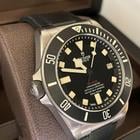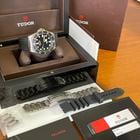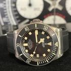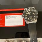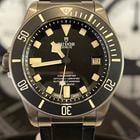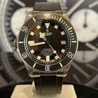 Tudor Pelagos LHD Ref M25610TNL meccanico a carica automatica calibro MT5612-Lhd cassa in titanio da 42 mm. corona di carica spostata ad ore 9 valvola per la fuoriuscita dell’elio ad ore 3. Vetro zaffiro quadrante nero ghiera girevole unidirezionale con incisa scala graduata con 60 minuti disco in ceramica nero opaca cinturino in caucciù nero e chiusura con fibia ed ardiglione originale Tudor.