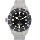 Named LHD for Left Hand Drive, the new Pelagos for left-handed divers features a winding stem positioned to the left of the case, so that the watch can be worn on the right wrist. In a nod to its past, the new TUDOR Pelagos evokes the brand’s history of dive watches designed specifically for left-handed professional divers. During the 1970s, the French Navy commissioned bespoke models for its left-handed divers. This TUDOR Pelagos LHD has a 42mm titanium case and features a black dial with luminous index and a black ceramic unidirectional bezel. The watch is fitted to a titanium bracelet with a folding buckle and safety clasp. This watch comes complete with TUDOR box and undated papers.