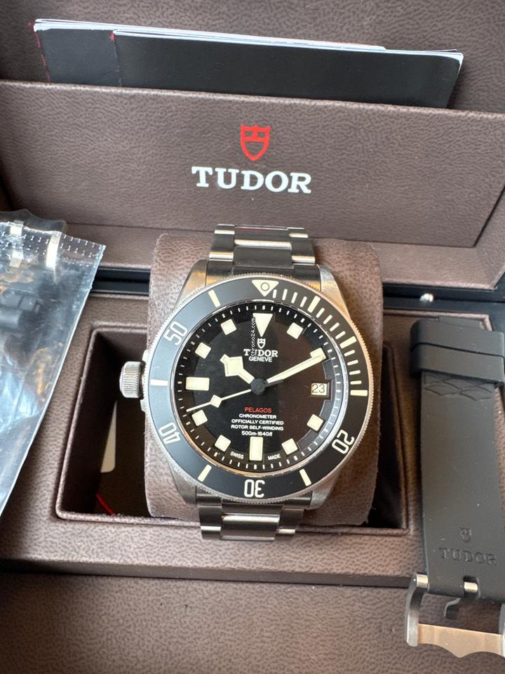 For sale is a Tudor Pelagos LHD Titanium, purchased in 2018. This timepiece is in excellent overall condition, with a few signs of wear as shown in the photos. There are light scratches on the crown and a barely visible scratch on the case, but nothing that detracts from the watch’s overall appeal. The bracelet is brand new, with the protective stickers still intact, as the original owner only ever wore the watch with the rubber strap. The watch comes with its full set, including the box, papers, and all original accessories. A fantastic opportunity to own this iconic titanium diver’s watch in fantastic condition!