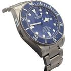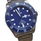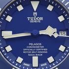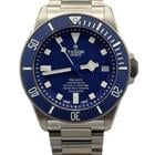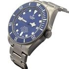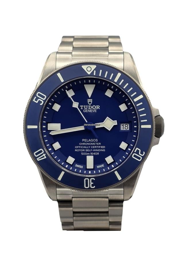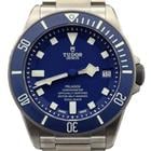 Tudor Pelagos Blue Dial Titanium 42MM. Ref. 25600TB (2015) The Tudor Pelagos Blue is a professional-grade dive watch crafted from titanium and stainless steel. It features a 42mm case with a matte blue ceramic dial and a satin finish. The matte blue ceramic bezel insert is unidirectional featuring a 60-minute graduated scale with luminescent white numerals and markers for enhanced underwater visibility.