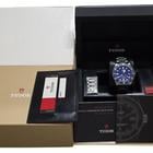 Tudor Pelagos Blue Dial Titanium 42MM. Ref. 25600TB (2015) The Tudor Pelagos Blue is a professional-grade dive watch crafted from titanium and stainless steel. It features a 42mm case with a matte blue ceramic dial and a satin finish. The matte blue ceramic bezel insert is unidirectional, featuring a 60-minute graduated scale with luminescent white numerals and markers for enhanced underwater visibility. The titanium screw-down crown is engraved with the TUDOR logo, and at the 9 o’clock position, the watch is equipped with an automatic helium escape valve for deep-sea diving. Bracelet: The titanium bracelet comes with a folding clasp and safety catch in stainless steel. It also features the patented auto-adjusting extension system developed by TUDOR, ensuring a secure and comfortable fit during dives. Movement: Manufacture Calibre MT5612 (COSC) Self-winding mechanical movement with a bidirectional rotor system Power Reserve: 70 hours Additional Specifications: Sapphire crystal Water resistance: Up to 500 meters (1,640 feet) Condition: Collector’s condition. Both the case and bracelet are in like-new condition, with the original case back and buckle stickers still intact. Full Set Includes: Outer sleeve, outer box, inner box, warranty card, extra links, model tag, and user manual. (Rubber strap not included). – The photos posted are of the actual watch and are 100% genuine. – We will verify that the watch is the correct one as shown in the post before delivering to you. – Shipping with insure via DHL, FedEx – The buyer will be responsible for paying customs duties or international taxes. If you have any questions, please feel free to message us. We are pleased to serve you. Thank you.