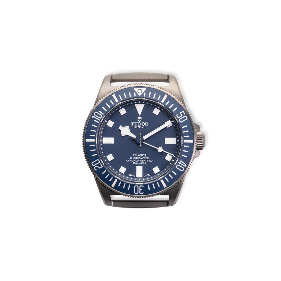 Nous avons trouvé la montre de plongée moderne par excellence. . . Voici la Tudor Pelagos FXD Marine Nationale ! Une montre sans compromis, car elle possède l’ensemble des éléments techniques que nous pouvons attendre d’une toolwatch, empruntant des codes qui ont fait la réputation en matière de savoir-faire horloger pour venir équiper les plongeurs de combat. CARRURE : 22 mm (entre-cornes) Diamètre de 42mm hors couronne Épaisseur de 12,75 mm Boitier en titane Années : 20222 Référence : 25707B/22 MOUVEMENT : Calibre Tudor à remontage automatique COSC réf. MT5602 CADRAN : Cadran bleu marine Super Luminova Bracelet et boucle : Deux bracelets d’origines Tudor, tissu & caoutchouc La montre est vendue full set, avec sa boite ainsi que ses papiers d’origines. *La montre est encore sous garantie Tudor. *Article non remboursable.
