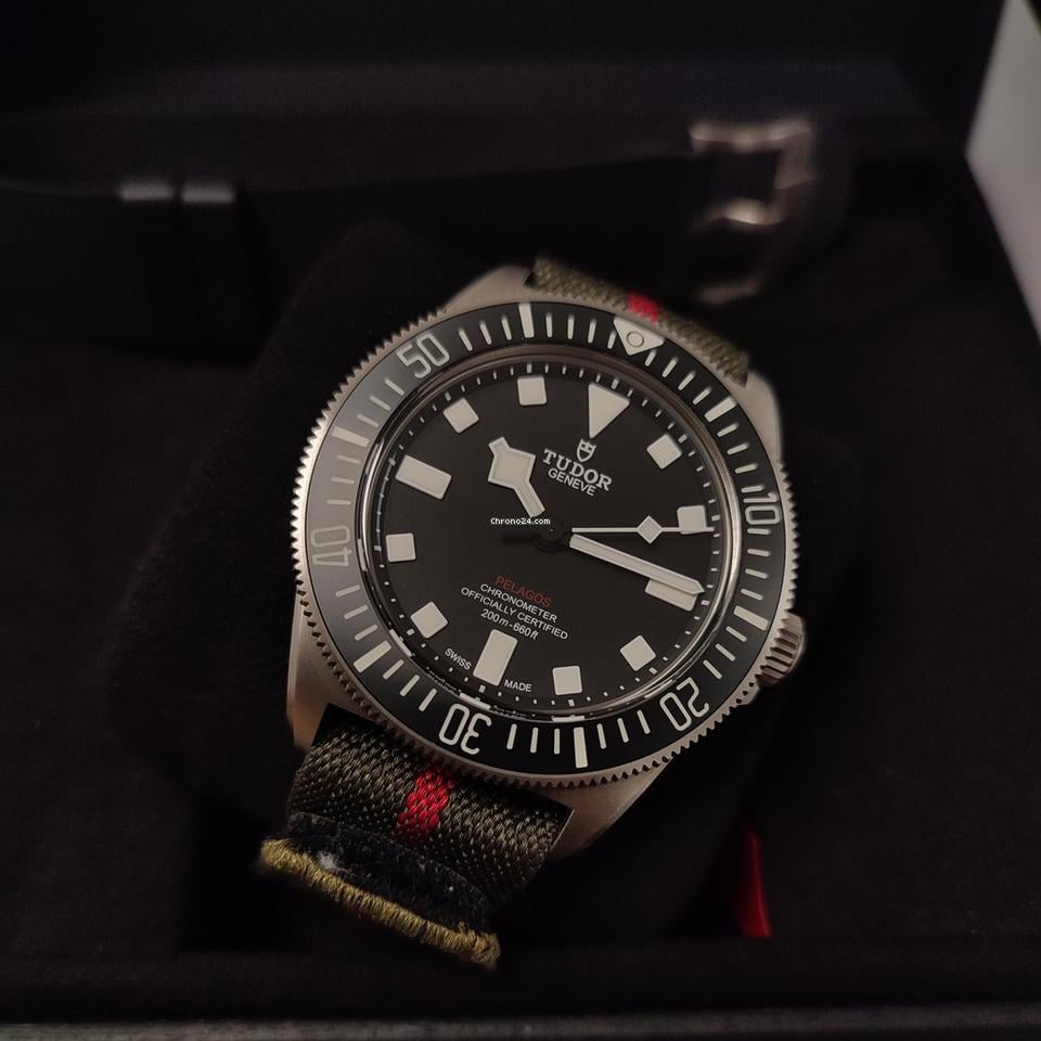 Watch never worn 42mm titanium case Khaki fabric strap Additional black fabric strap included in the box Full set from 2024, with boxes, warranty card and booklet 100% original Tudor Under official Tudor warranty until 2029 Available in Bastia at Atelier Vega Horlogerie, a watchmaking workshop certified by the leading Swiss brands: Omega, Cartier, Panerai, Jaeger-LeCoultre, Longines, Tag Heuer, Rado, Hamilton, Tissot, etc.