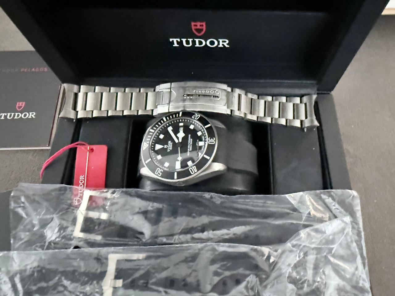 Original Tudor Pelagos 42 with ETA movement and coveted two line dial and thinner case. Keeps time within COSC and has all links rubber strap divers extension and a free Zealandre Rubber Strap made just for this model.